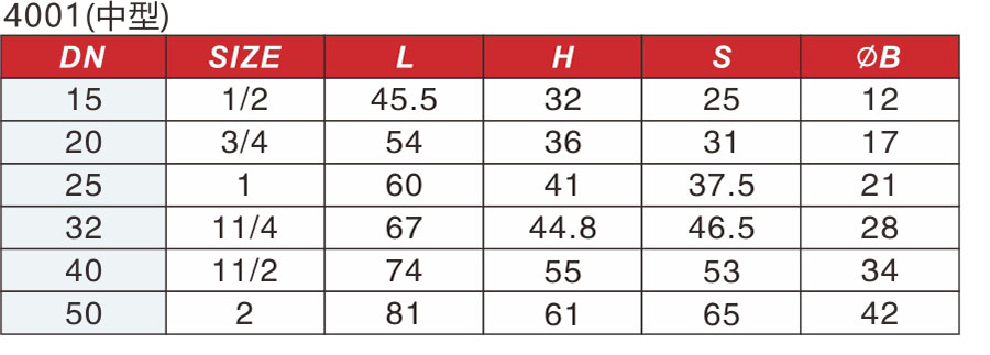 注: 4001中型止回閥、4002重型止回閥 密封材料有銅密封和硅膠密封配件。