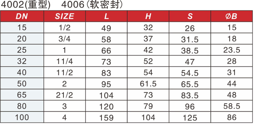 注: 4001中型止回閥、4002重型止回閥 密封材料有銅密封和硅膠密封配件。