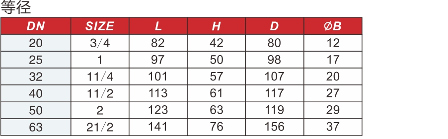 產(chǎn)品尺寸表: