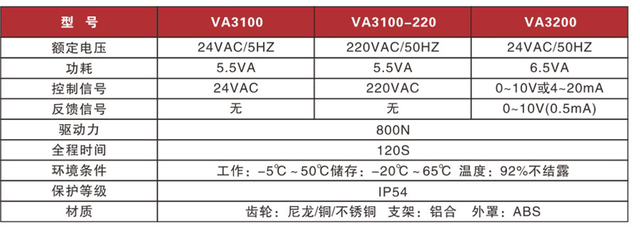VA3200:標(biāo)準(zhǔn)型,標(biāo)準(zhǔn)信號控制,輸入控制信號0~ 10V