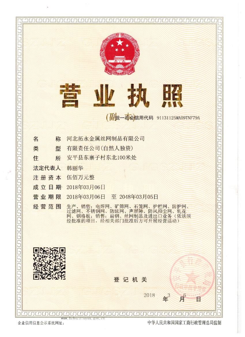 河北拓永金屬絲網(wǎng)制品有限公司 聯(lián)系人:韓經(jīng)理 手機(jī)18632889795 座機(jī)0318-7980691 傳真傳真:0318-7980690 郵箱 地址衡水市饒陽縣金岳絲網(wǎng)產(chǎn)業(yè)園A區(qū) HTML XML